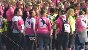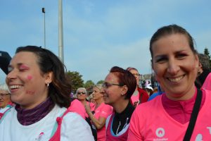 Nous étions toutes inscrites dans la section marche et nous avons pu passer un agréable moment entre mamans et bénévoles. En arrivant nous avons eu le plaisir de revêtir le tee-shirt fourni par les                 Mulhousiennes en le customisant aux couleurs de notre association, chaque maman s’est vue maquillée avec des papillons, des cœurs et le prénom de son enfant disparu. Les papas et les enfants nous             soutenaient depuis les gradins.